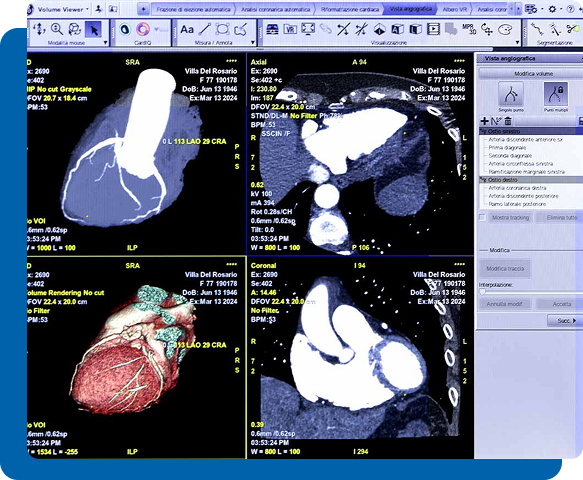 Rappresenta uno strumento fondamentale nella prevenzione e nella diagnosi delle patologie cardiovascolari, permettendo di ottenere informazioni accurate senza ricorrere a procedure invasive. Presso Villa del Rosario, la TAC Coronarica è integrata nei percorsi di cardiologia e diagnostica avanzata, a supporto di una valutazione completa del rischio cardiovascolare.